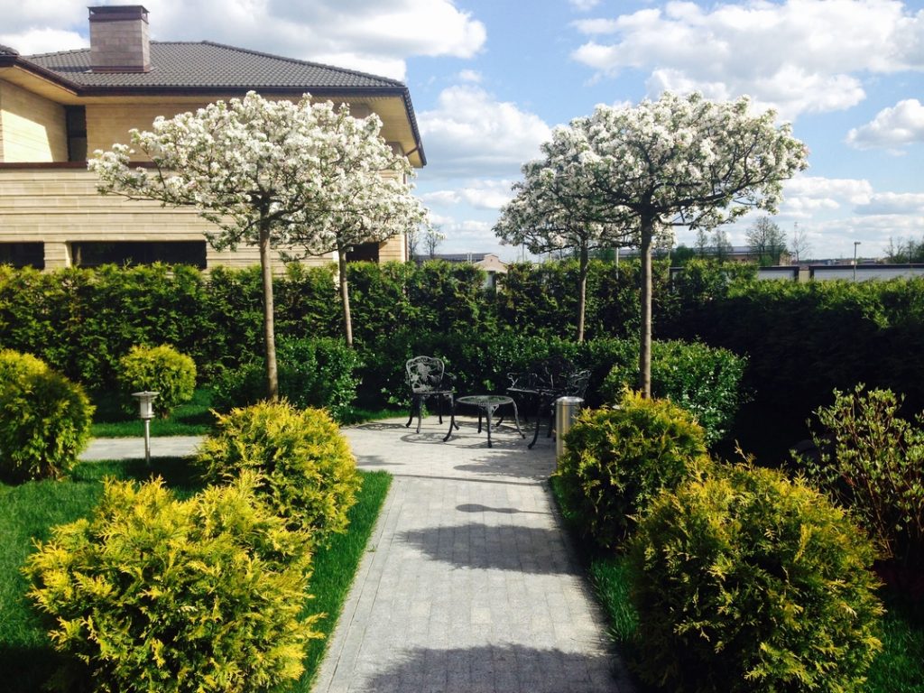 Cuando se completa el diseño en papel y hay un plan de trabajo en la mano - es hora de comenzar a implementar el plan. Y lo más interesante aquí es el trabajo de arreglar y ennoblecer el jardín. Las fotos de diseño de jardines descritas en los siguientes párrafos son el resultado de un enfoque cuidadoso de cada etapa y la ejecución profesional de los proyectos.
