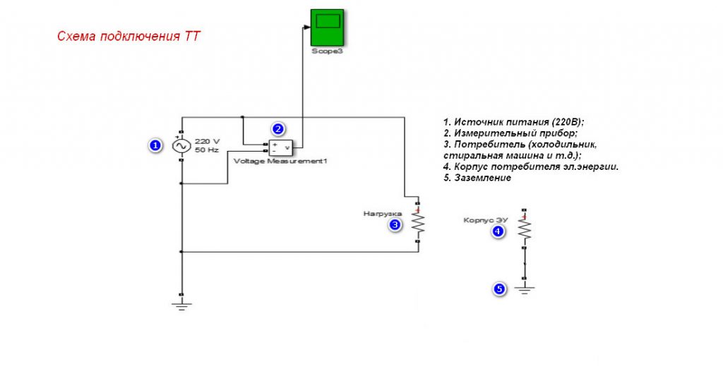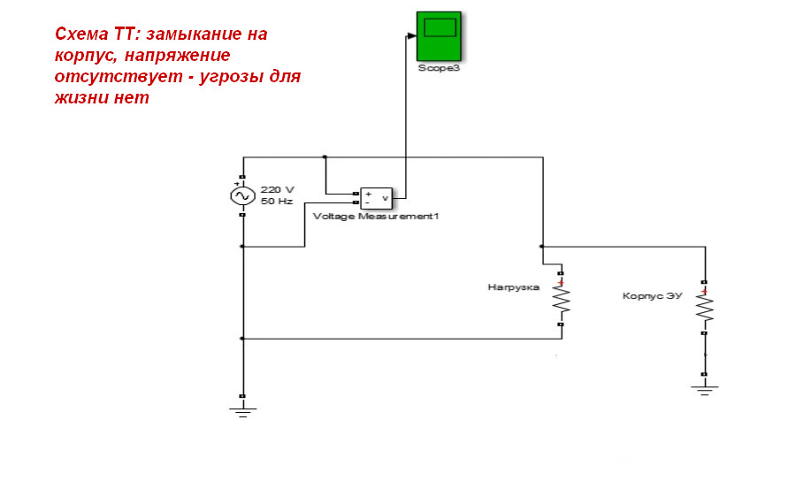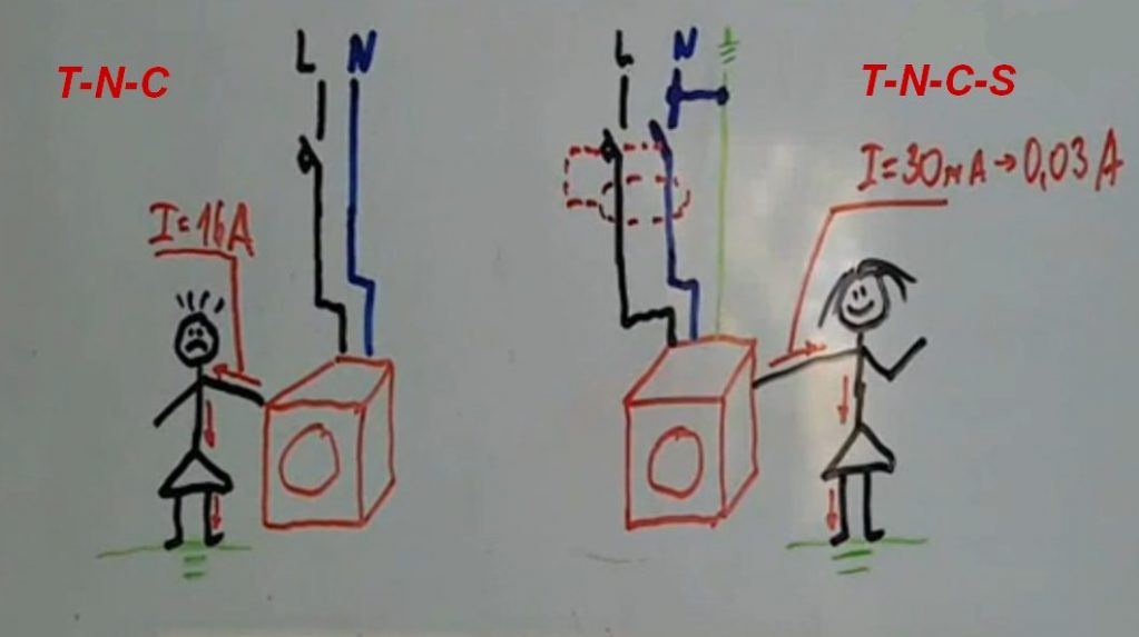 asignado a una red separada y autónoma. Esta conexión es la más segura.En caso de avería, surge un potencial eléctrico en la carcasa del dispositivo, que será igual a la tensión de entrada, es decir 220 V es potencialmente mortal. Sin embargo, la carcasa está conectada a tierra y el voltaje que ha caído sobre ella irá a tierra.
