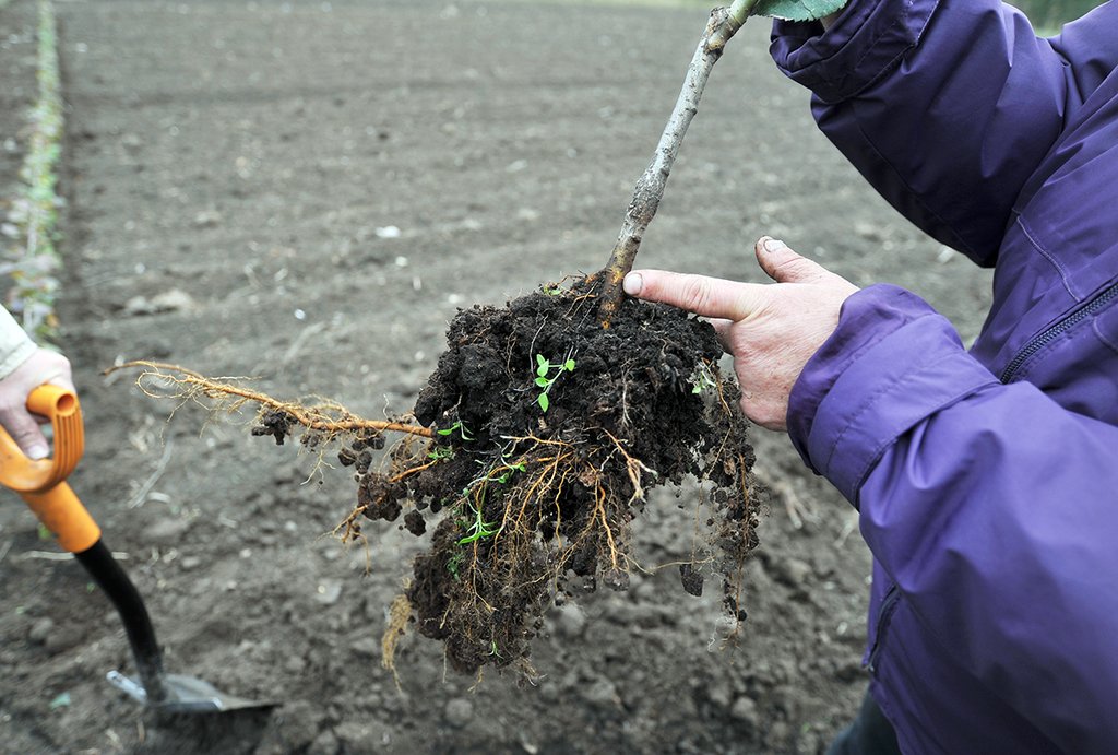 Lo ideal es que la poda no supere los 5-7 cm. Si las raíces son demasiado largas, es mejor expandir el diámetro del hoyo de plantación o colocar de alguna manera el sistema de raíces en el existente. Además (especialmente durante el trasplante de primavera) no se recomienda podar el sistema de raíces de las plántulas obtenidas a partir de esquejes.
