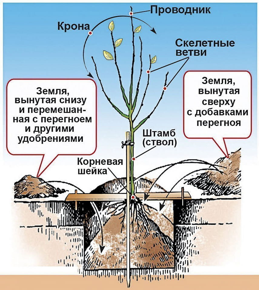 Las dimensiones del hoyo de plantación (diámetro y profundidad), así como la mezcla de suelo con la que se llenará, también son muy importantes para la supervivencia de las plántulas. Por lo general, los hoyos para plantar se preparan con anticipación (alrededor de 1 a 3 meses) antes de comprar las plántulas. El pozo debe tener en cuenta no solo el tipo de árbol plantado sino también la composición del suelo.