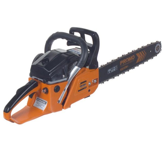El equipo está equipado con un motor monocilíndrico de dos tiempos y se llena con una mezcla de combustible compuesta por aceite 2T y gasolina AI 92 en una proporción de 25:1. El arranque se realiza mediante un arrancador manual, y la uniformidad en el avance de la cadena se logra mediante un asterisco ubicado en el neumático. La carga en el motor se reduce significativamente y la lubricación se automatiza. El tornillo exterior está adaptado para ajustar el grado de tensión de la cadena.