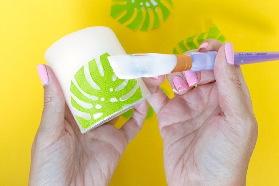 El pegamento PVA fija perfectamente las servilletas y el papel decorativo.