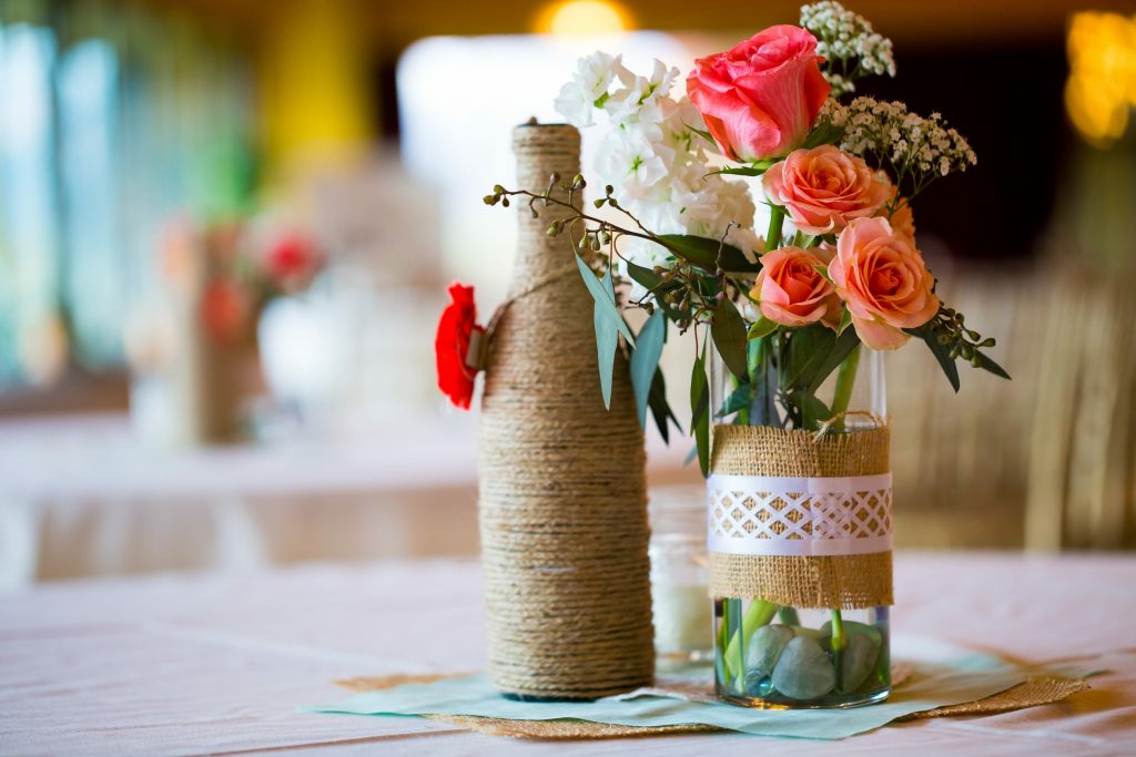Hermosos portavelas de estilo tropical se pueden utilizar para cenas románticas.