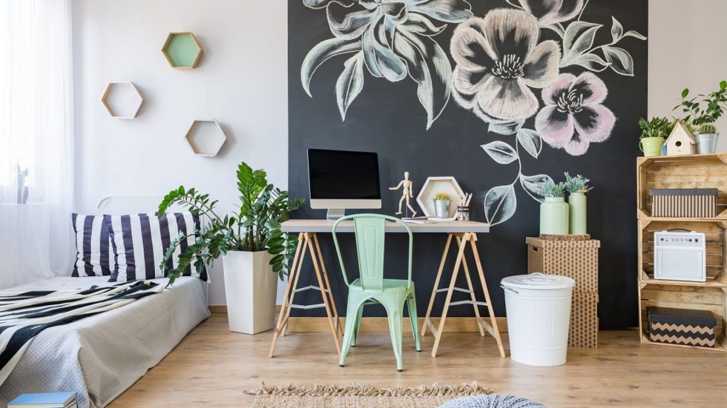 Las obras de arte de bricolaje hechas de plantas decorarán perfectamente el dormitorio.