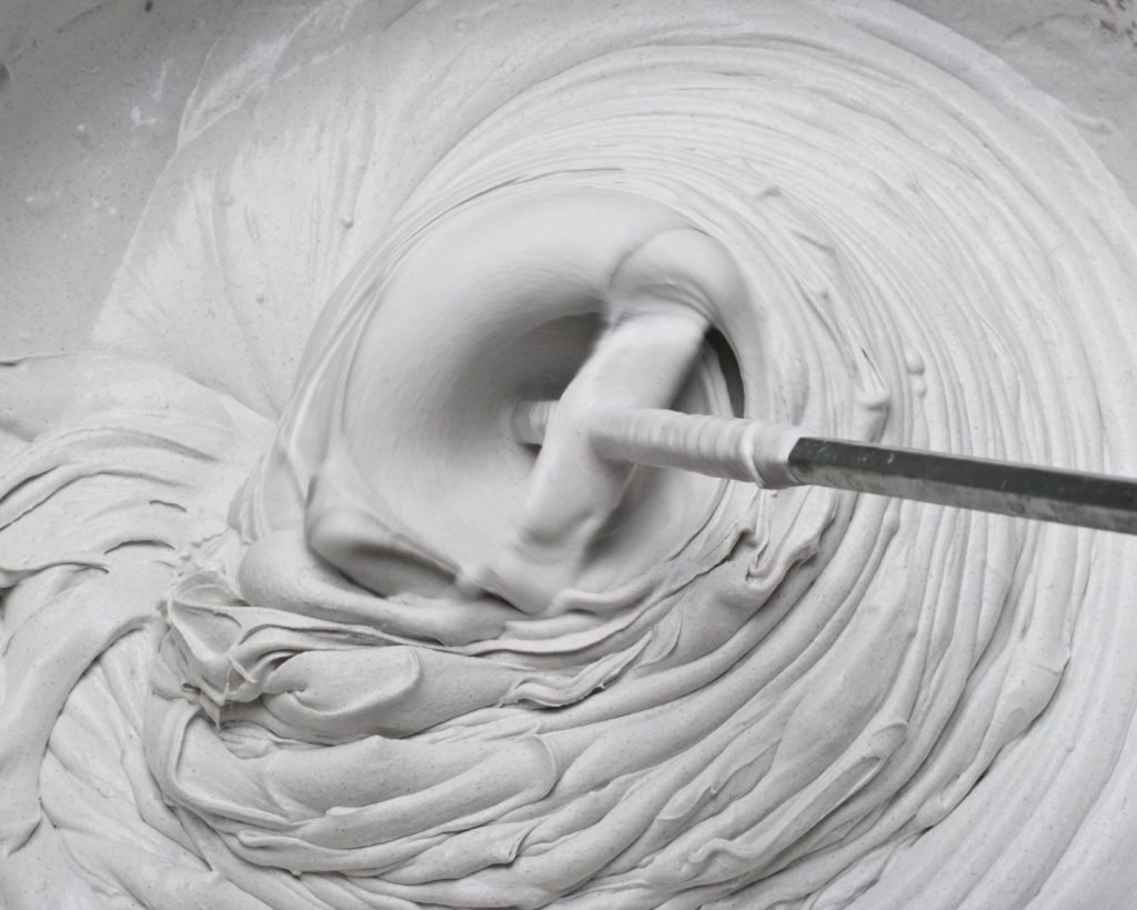 - Compuesto de yeso con aditivo de metilcelulosa. Plástico, no se hunde, se encoge mínimamente y no se agrieta