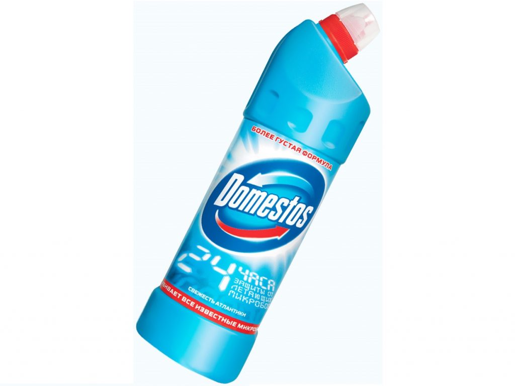 Domestos es una preparación universal para diferentes tipos de recubrimientos. Elimina bacterias, moho, limpia rápidamente, blanquea. Se usa con mucha moderación.