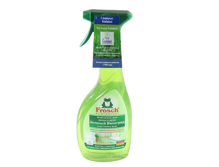 Frosch es un producto con una composición segura y natural, por lo que no se requieren guantes de limpieza. El ingrediente activo principal es el ácido tartárico. El producto elimina perfectamente los depósitos de cal, la suciedad, los restos de soluciones jabonosas y también huele bien.