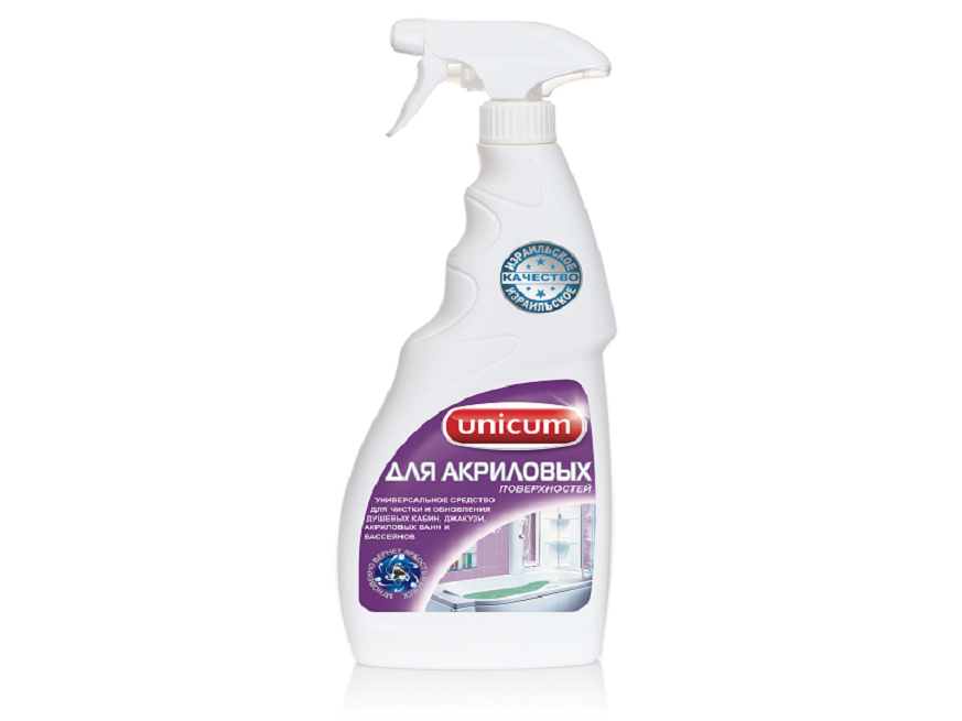 7. Unicum (750 ml) | Preparación para la limpieza de superficies poliméricas; Después del procesamiento, forma una microcapa protectora que evita la recontaminación; | Spray para el cuidado de bañeras y cabinas de ducha acrílicas y plásticas; | 235 |