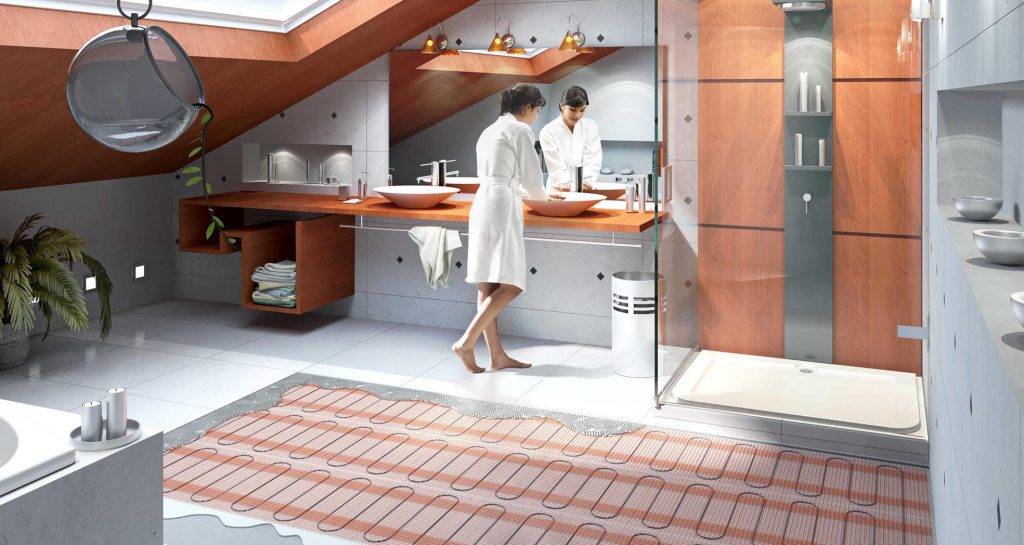 Además, el suelo radiante eléctrico suele instalarse directamente debajo del revestimiento del suelo, en una ducha improvisada.