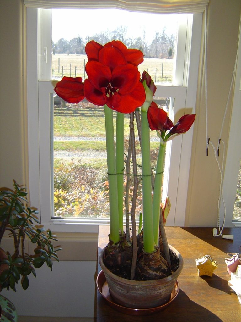 On olemassa vaara, että oman painovoimansa vaikutuksesta amaryllis alkaa nojata tai jopa pudota. Keraaminen kukkaruukku on ihanteellinen: se antaa juurille oikean määrän ilmaa ja on melko vakaa.