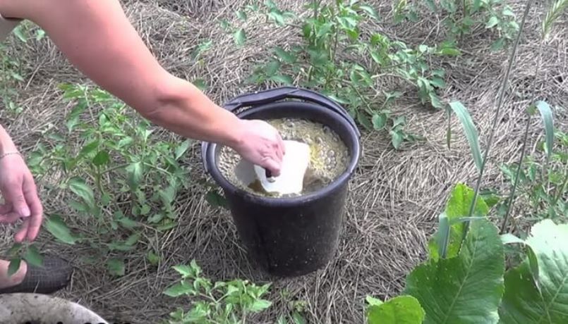 Tuloksena oleva "cocktail" täytetään vedellä täyteen tilavuuteensa ja annetaan hautua 2 viikkoa. Luonnollisesti tämä on tehtävä etukäteen, jotta lannoitus kukinnan aikana on jo valmis.