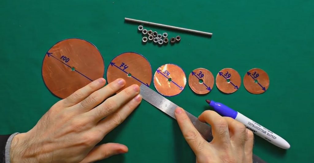 Oikean geometrisen muodon ympyröiden leikkaamiseksi tarkasti, sinun on ensin keskitettävä työkappale, ts. poraa ympyröiden keskipisteet ja merkitse ne kompassilla.
