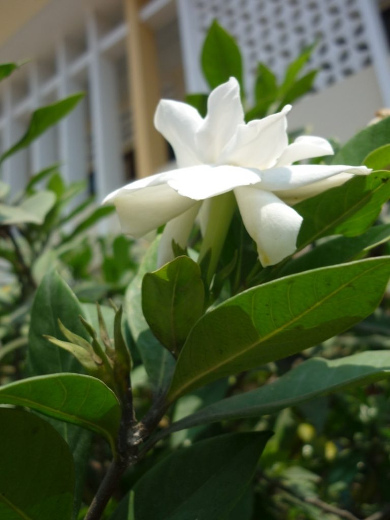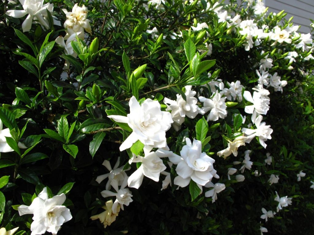 Gardenia kukkii toukokuusta elokuuhun. Kukat ovat usein yksinäisiä, harvoin kerätty 3-5 kappaleen kukintoihin, suuria, puoliksi kaksoisterälehtiä, ne tuoksuvat erittäin lempeästi. Väri - valkoinen, joskus keltainen.