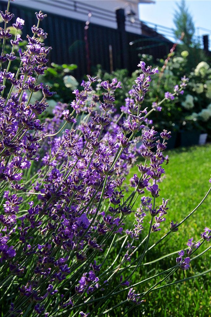 Korkea laventeli näyttää yhtä kauniilta aidan lähellä ja alueen jakamisessa vyöhykkeisiin.