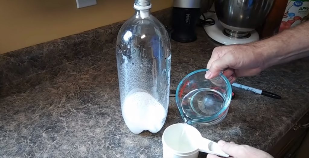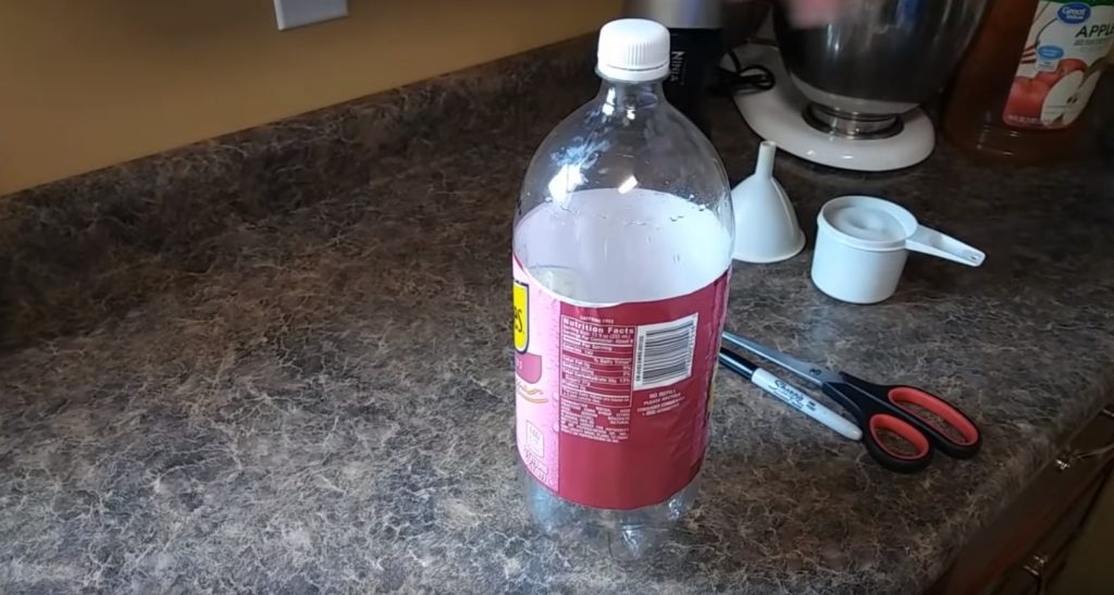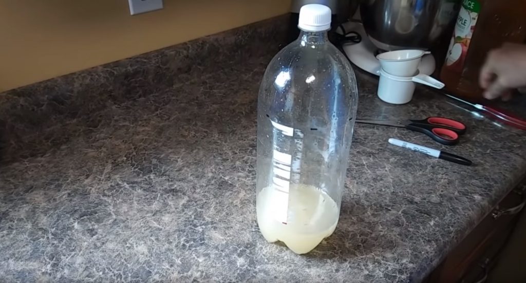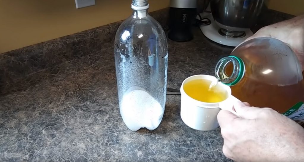Sitten veden ja mehun seos kaadetaan pulloon.
