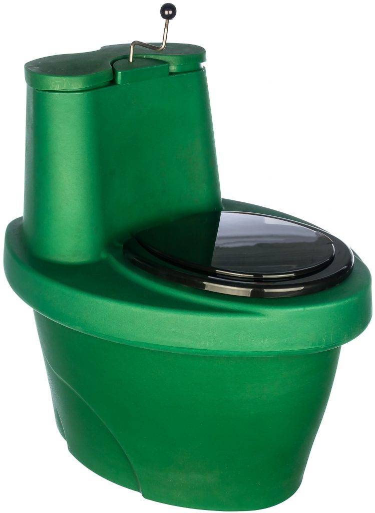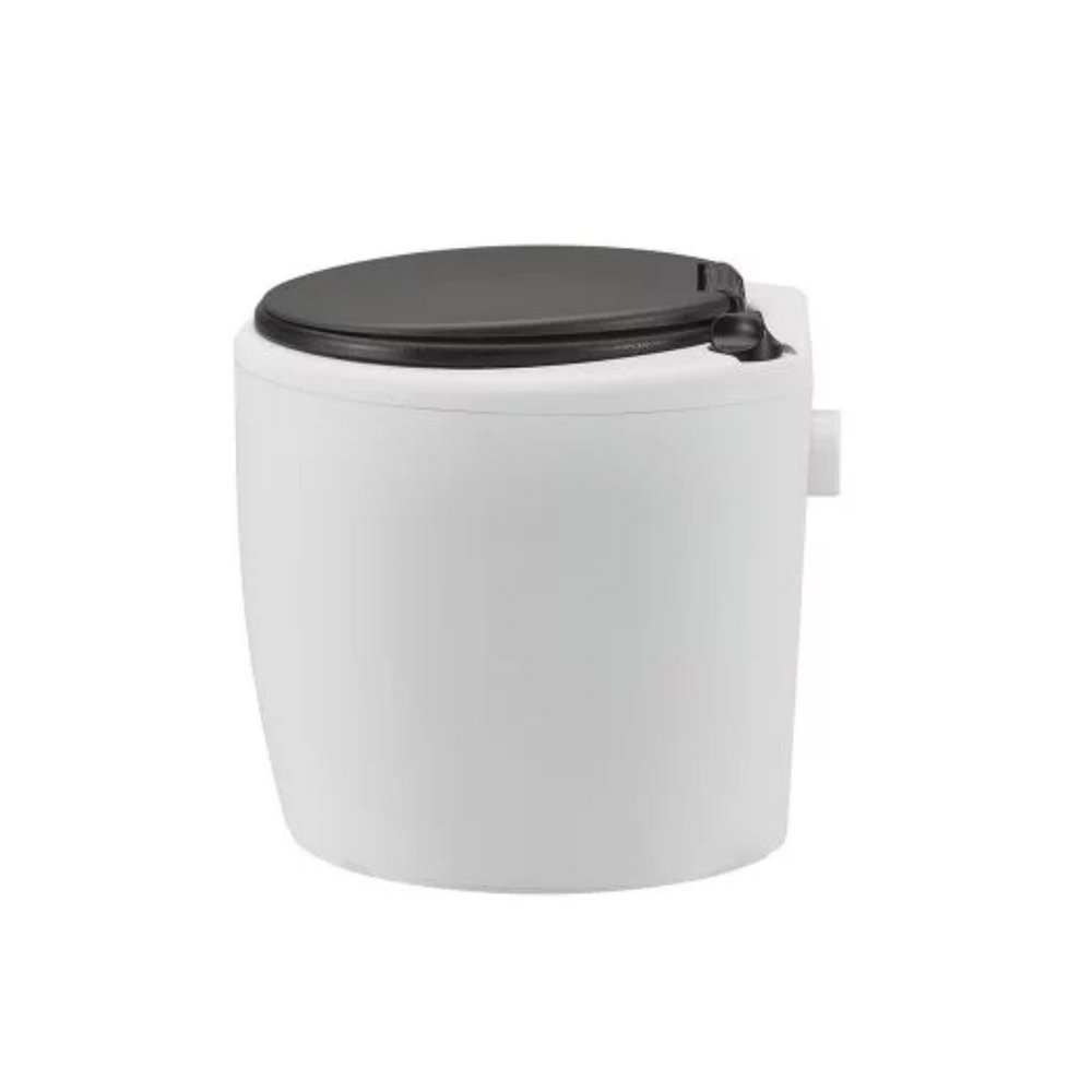 Kuivakaappi kemiallisella jätteenkäsittelymenetelmällä, valmistettu polypropeenista, polyamidista ja kumista. Mobiilirakennetta täydentävät telat 17 litran täytetyn astian kätevää kuljettamista varten.