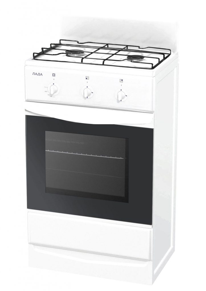 Laite, jossa on liesi 4 emaloidulle kaasupolttimelle, uuni, jonka tilavuus on 45 litraa, kestää enintään 60 cm leveä (89 cm korkea, syvyys - 55 cm). Ohjaus tapahtuu kiertokytkimillä, polttimille on sähkösytytys.