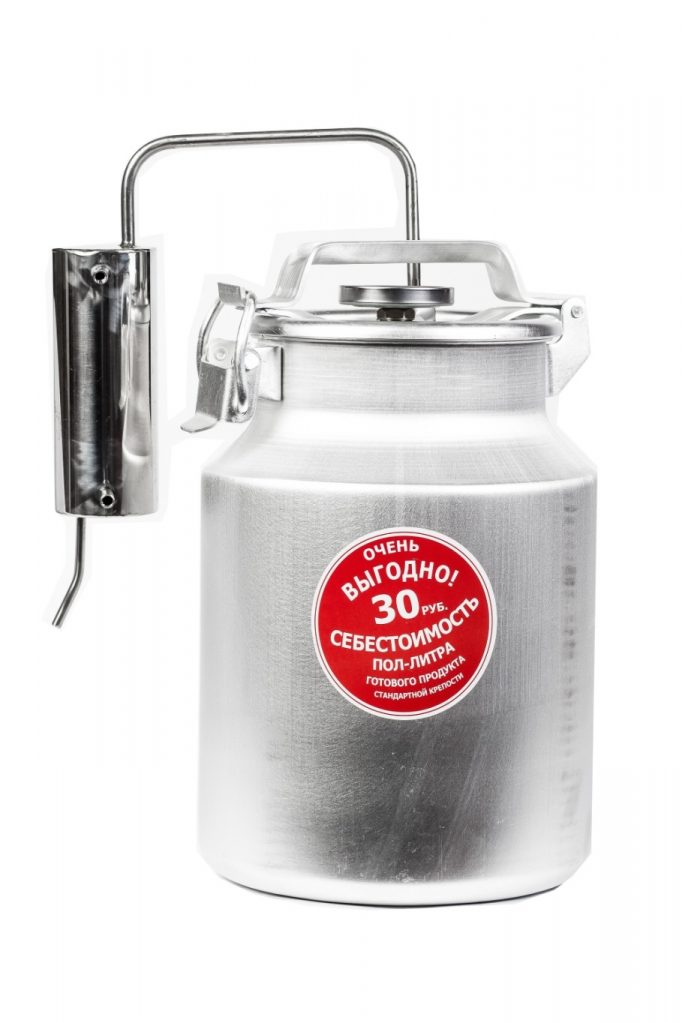 Tislauskone 12 litralle virtausjäähdyttimellä, tislauskuutiolla ja irrotettavalla höyrystimellä. Tämän suunnittelun avulla voit saada tuloksena puhdasta raakaalkoholia. Laitteen lisäksi täydellinen paketti sisältää: 4 m pitkän kumiletkun, alkoholimittarin, kotelon, adapterin ja esitteen resepteillä.