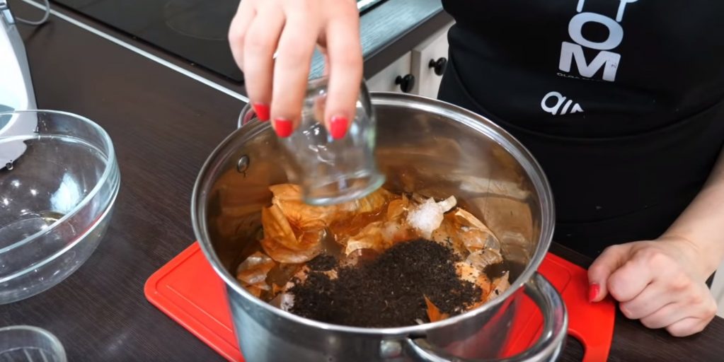 Sitten lisätään suola ja sokeri. Ja viimeinen ainesosa on tee.