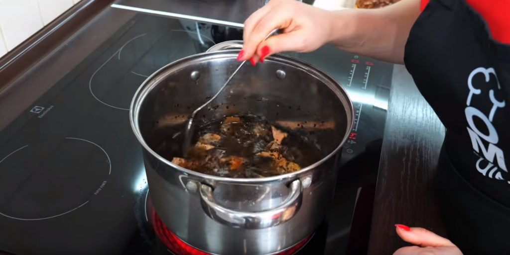 Kun kaikki ainekset on lisätty, marinadi laitetaan liedelle ja kiehautetaan säännöllisesti sekoittaen.