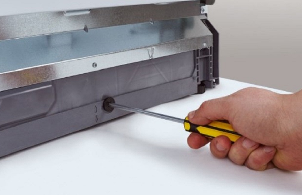 Ennen kuin kiinnität PMM:n tiukasti syvennyksiin tai kaappeihin, ne on myös tasoitettava tasalla. Tämä on helppo tehdä, sillä sisäänrakennetut koneet on varustettu myös korkeussäädettävillä jaloilla.