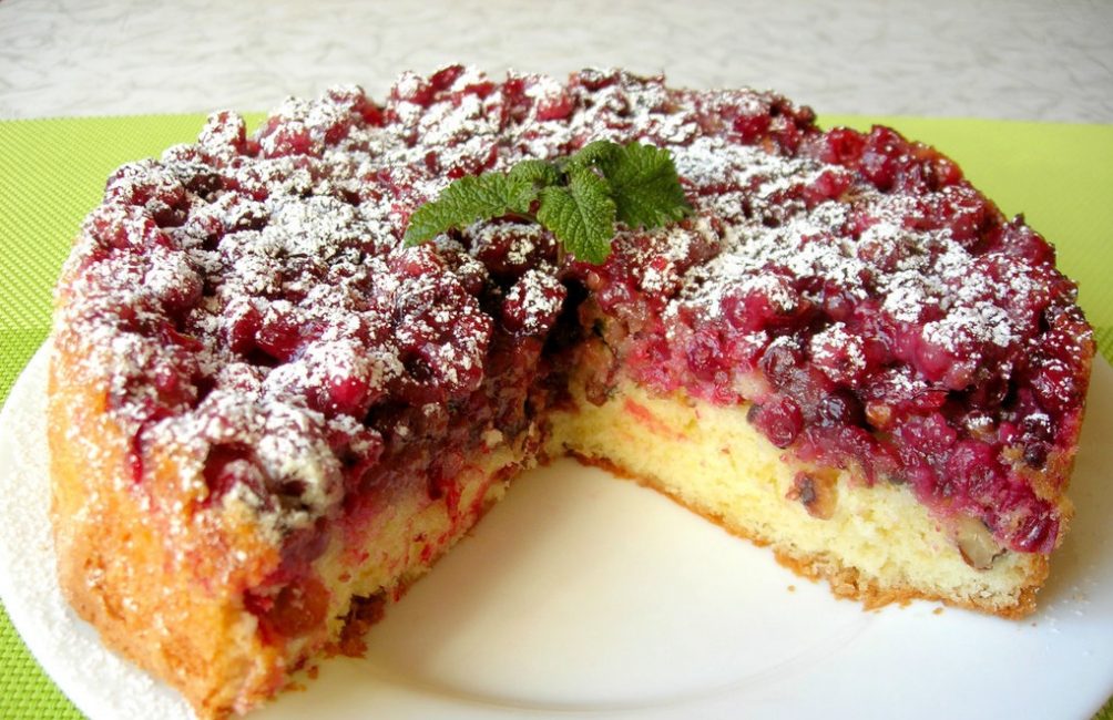 - Sekoita karpalot tehosekoittimella sokerin kanssa. Massa kaadetaan valmiin kakun päälle