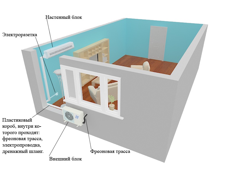 - ulkoasennus. Kaikki rakennukset eivät voi ripustaa ulkoyksikköä. Jos sitä ei ole mihinkään kiinnittää, he laittavat sen yleensä parvekkeelle