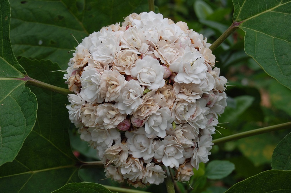 Egy másik fajta szerény karakterrel. A Fülöp-szigeteki klerodendrum az egyik legillatosabb: a növény aromája a vanília és a jázmin jegyeit ötvözi. Az illata különösen esténként érezhető. A növény levelei sötétzöldek, a virágok fehérek, rózsaszínes árnyalattal, a virágzat nagy.
