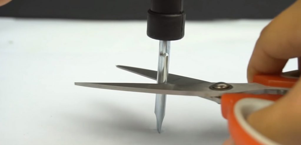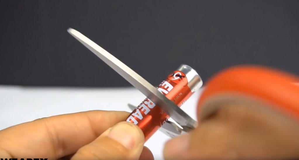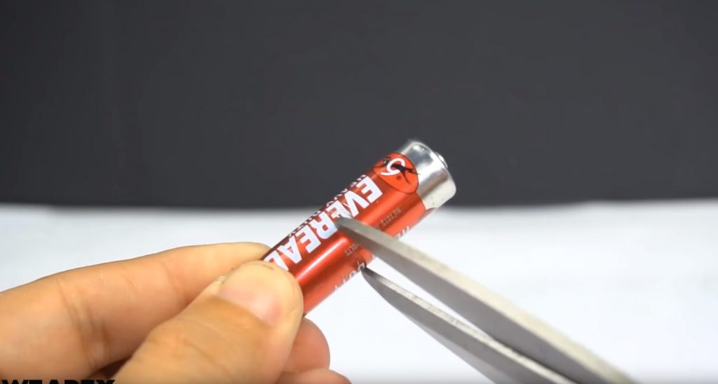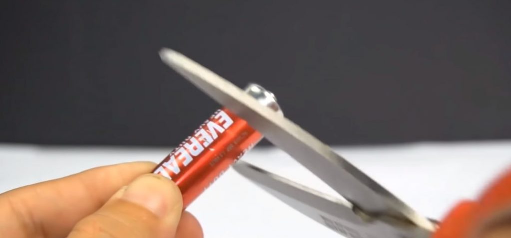 Ehhez a módszerhez AA elemre lesz szüksége fém házzal. A mozgásokat, amint azt korábban említettük, az olló hossza mentén hajtják végre.