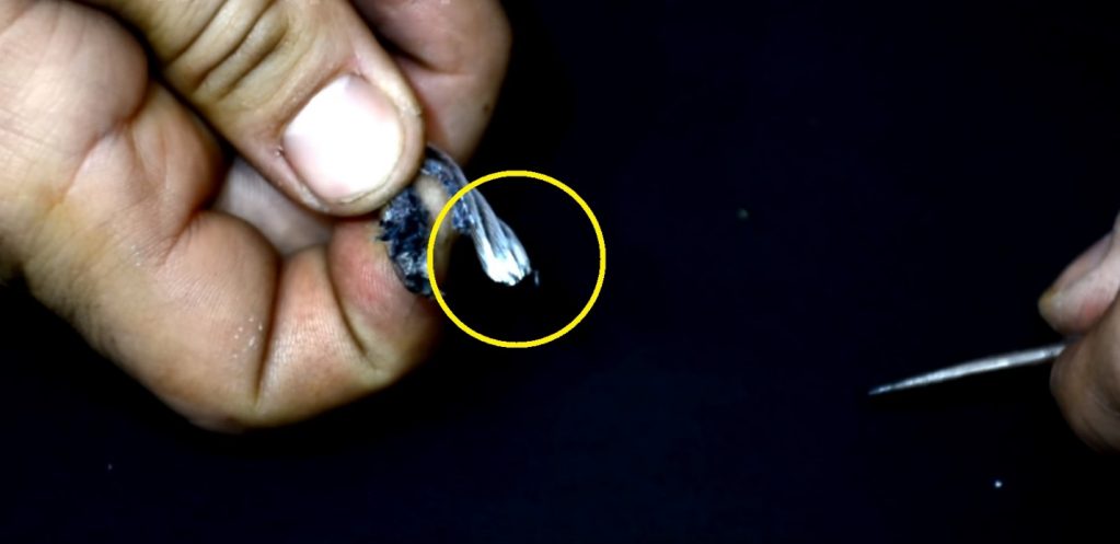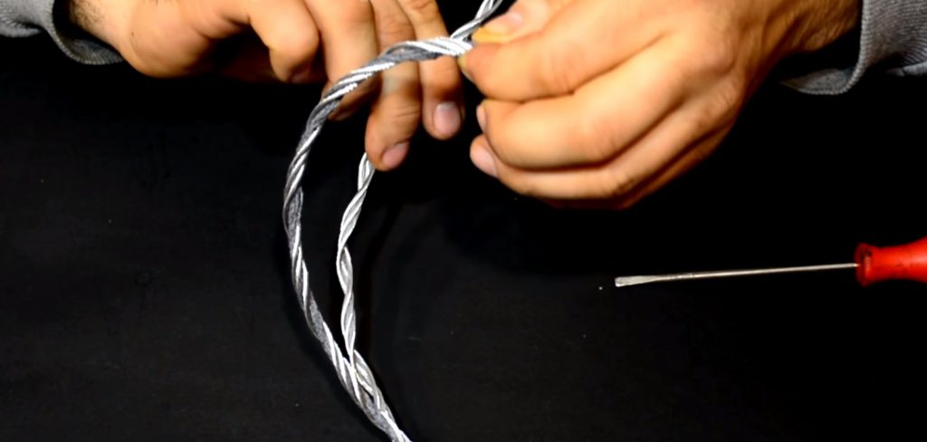 A kábelt a végétől a csavarhúzóval készített jelig le kell csavarni. Ennek végrehajtása meglehetősen egyszerű. Általában a kábel 6 szövött szálból áll.