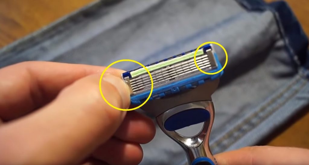 És mégis, van mód az ilyen pengék élezésére. A farmer textúráját élezőként használja. Ebben az esetben a pengék az egyik oldalon meg vannak élezve, de ez elégnek bizonyul a borotva teljesítményének helyreállításához. A cikk részletesen leírja a Gillette borotva élesítésének folyamatát egy kemény farmerhalom segítségével.