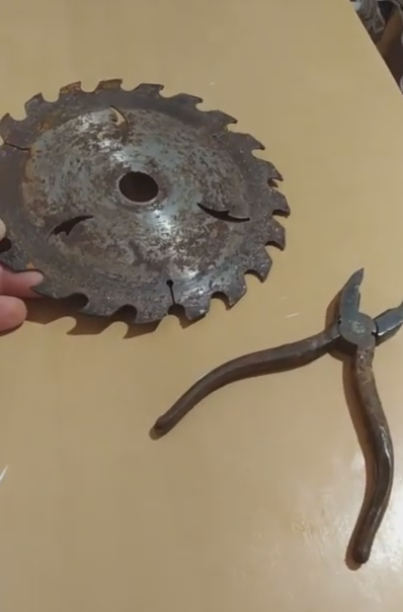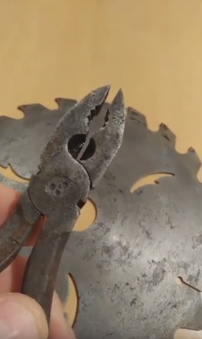 Kísérletet fogunk végezni a tisztítással kapcsolatban rozsdás fogó és daráló tárcsa példájával. Fotó: youtube.be/Hq9yzCsFoFI