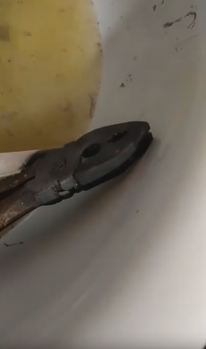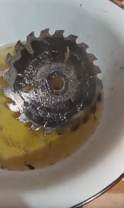 Így néz ki a fogó és a tárcsa forrásban lévő citromsavoldatban történő feldolgozás után. Mint látható, rozsda nem maradt. Fotó: youtube.be/Hq9yzCsFoFI