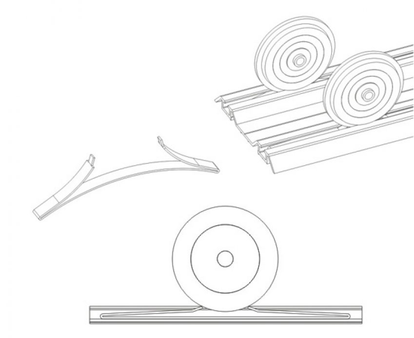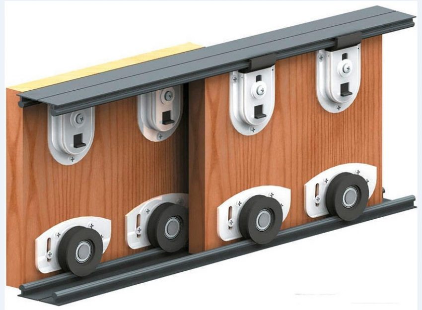 - räls (stöd)konstruktioner: rullen är installerad inuti styrningen, så att dörrarna öppnas smidigt, utan ansträngning; bortfall av löpande vagnar är uteslutet