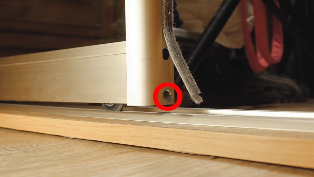 - Inga självgängande skruvar eller bultar behövs för att fästa den enstaviga bottenskenan. Även om många instruktioner rekommenderar användning av fästelement, rekommenderar vi inte att använda dem. När allt kommer omkring, om en av dessa bultar en dag kommer ut lite, kommer dörren helt enkelt att stanna.