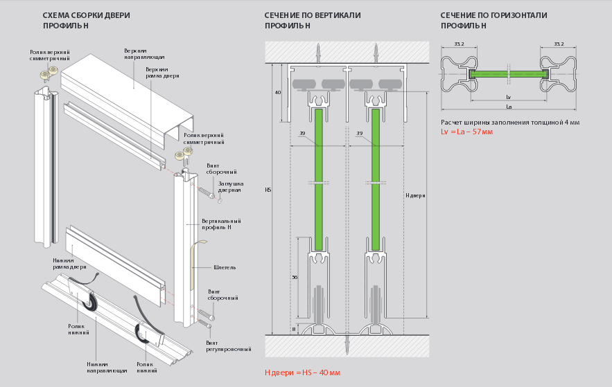För enkelhetens skull är det bättre att ange dimensionerna för var och en av delarna i en tabell som anger deras längd, bredd och kvantitet. Det finns många program på nätverket utformade för att exakt beräkna skjutdörrssystem.