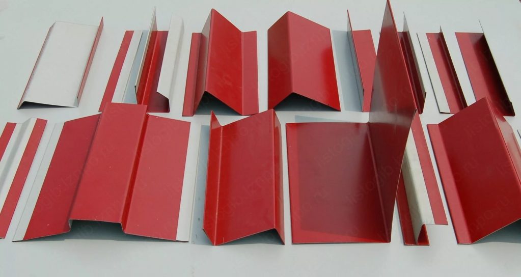 Förutom själva wellpappen måste du också köpa fästelement (självgängande skruvar) och ytterligare element för fastsättning på skridskor, dalar, i området kring skorstenen och väggarna. Du behöver också hörn, änd- och taklister. Vi kommer att beskriva var och en av dem mer i detalj nedan. Vid beräkning av det erforderliga antalet ytterligare element måste man ta hänsyn till att de, liksom det profilerade arket, är monterade med en överlappning.
