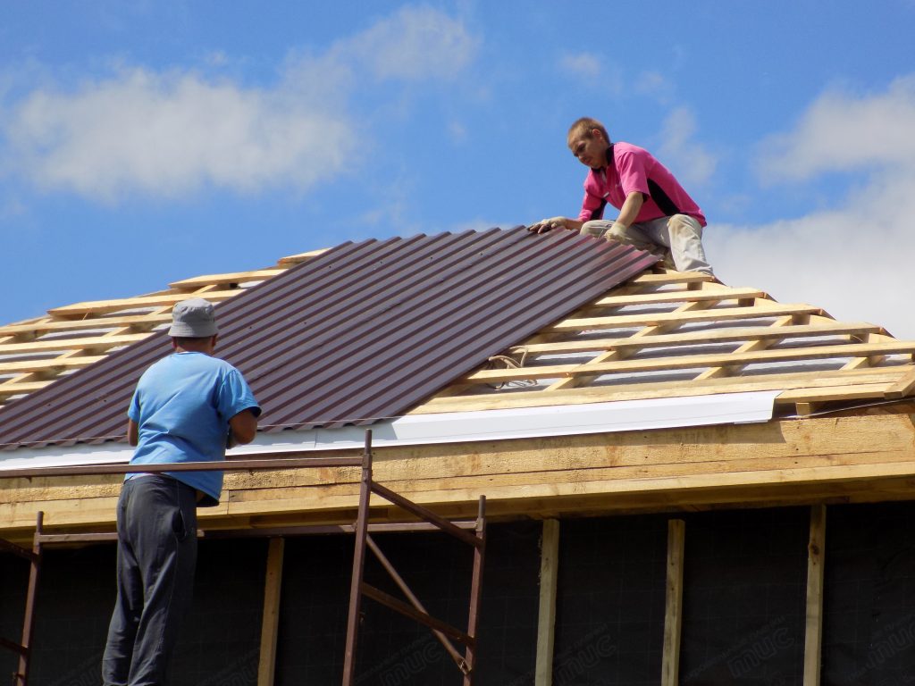 - Plåtar läggs på vardera sidan av taket från dess nedre kant. Så att överlappssömmarna inte är iögonfallande är det bättre att börja från dess bortre ände och gradvis röra sig mot ingången till byggnaden. En liknande metod används till exempel när man klistrar tapeter. De limmas från fönstret just för att skarven på sömmen inte är iögonfallande vid ingången