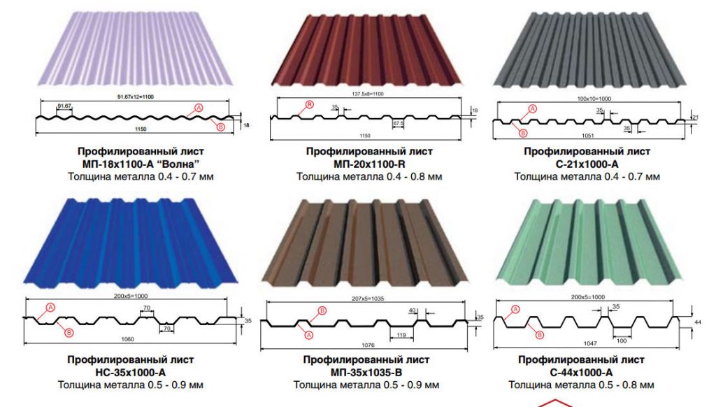 - korrugering form och höjd: maximal styvhet garanteras av en våg i form av en trapets; för tak med en lutningsvinkel på 45 ° är dess optimala höjd minst 20 mm; för platta tak bör denna parameter vara högre