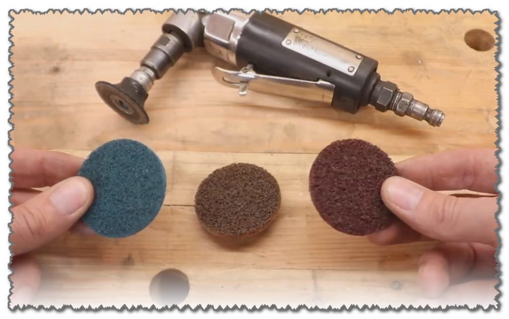 Vi använder skivor med P40-60 korn, vilket motsvarar en kornstorlek från 250 till 425. Jag föredrar P40.