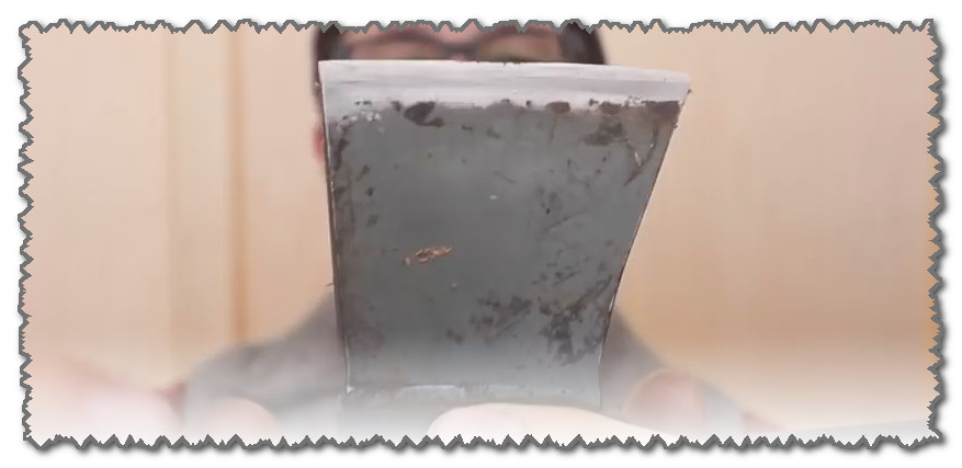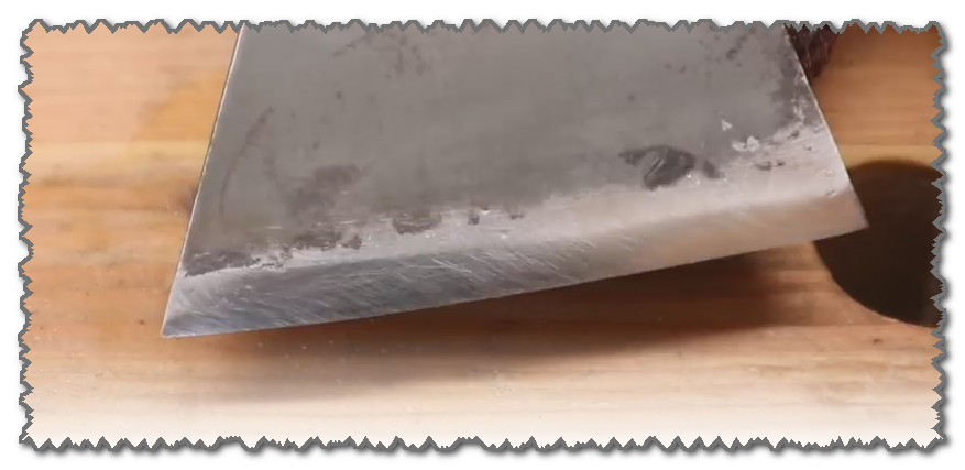 Efter polering får yxbladet en spegelglans - detta är en indikator.Du måste dock kontrollera i praktiken - vi kommer att skära metallnitningen. Som kan ses i figur 9 kunde den inte motstå - den skars på mitten och tvekade samtidigt praktiskt taget inte.