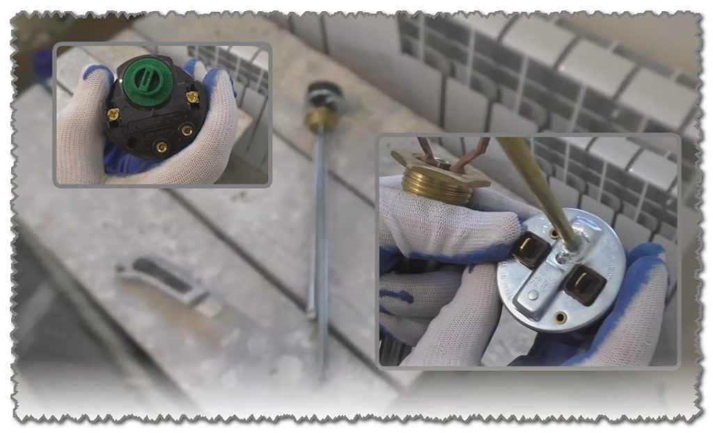 För att montera värmeelementet, förutom silikontätningspackningen, behövs inget annat, så vi tar bort det termiska reläet från den elektriska apparaten och installerar det i det nedre radiatorgrenröret.