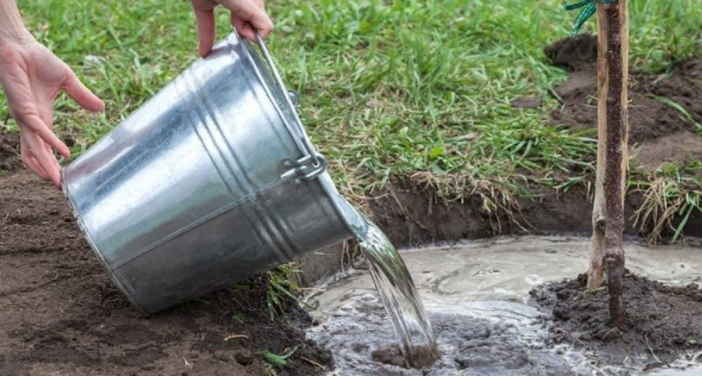 Bevattningshastigheten beräknas med en enkel formel: antalet hinkar med vatten är lika med trädets ålder. Växter över 10 år vattnas med 100-150 liter vatten åt gången. En tid efter fruktsättning (vanligtvis i slutet av september) görs den fjärde vattningen; dess syfte är att fukta de nedre lagren av jorden väl. Sådan bevattning kallas fuktladdning, vattenförbrukningen för den är upp till 6 hinkar per 1 kvm. m. område under kronan.