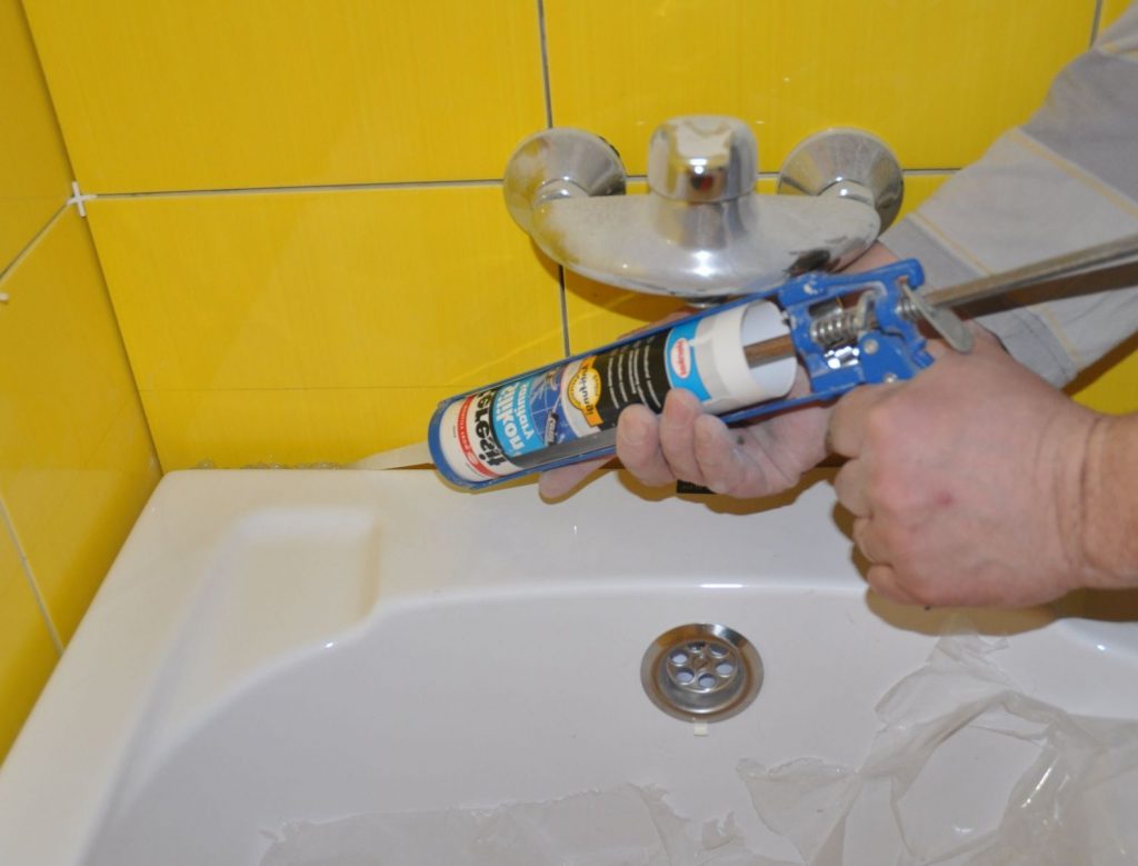 För att täta sömmar, sprickor och fogar i badrummet, använd produkter i form av en bekväm applikator eller köp dessutom en mekanisk konstruktionspistol.