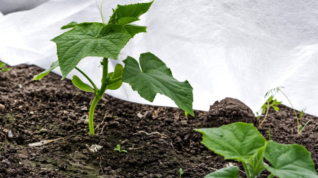 Jorden under sådant material förblir våt under lång tid, dessutom skapar det ett oöverstigligt hinder för de flesta skadedjur och ogräs. Samtidigt, till skillnad från en polyetenfilm, passerar ett icke-vävt täckmaterial perfekt luft.