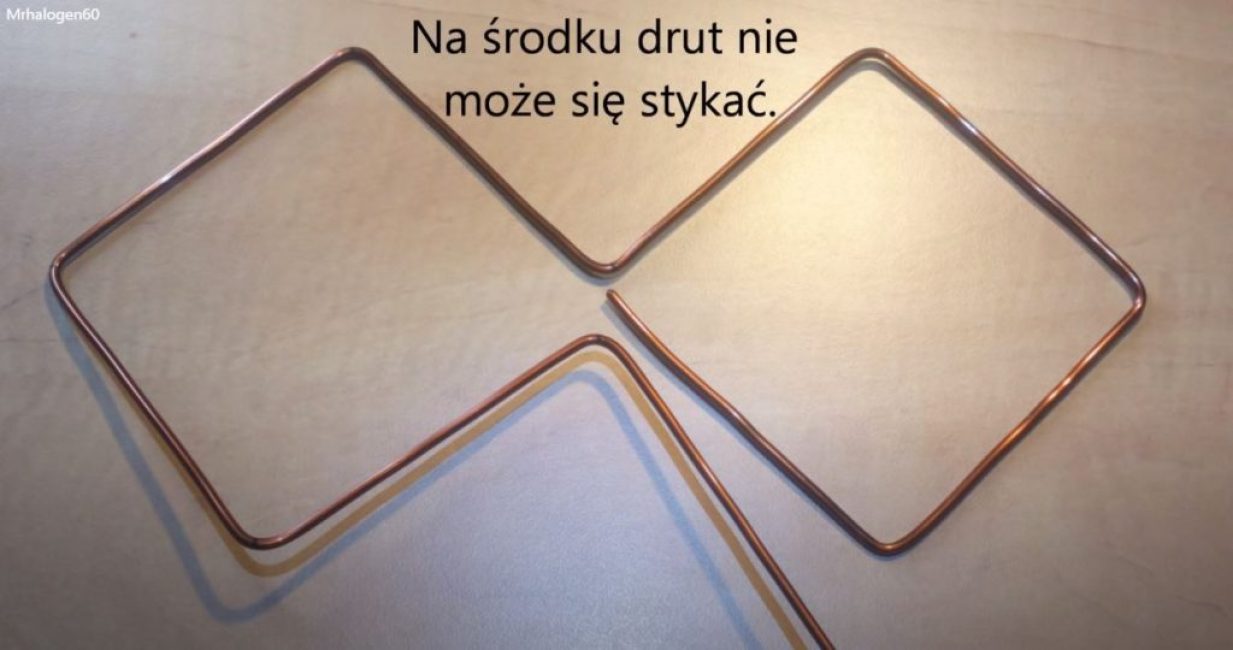 Örneğimizde, 690 MHz frekansında iletilen bir televizyon sinyali için bir anten yapacağız. Dalga boyunun ≈0.42 m olduğunu hesaplamak kolaydır, bu da karenin bir kenarının 10,5 cm olduğu anlamına gelir.
