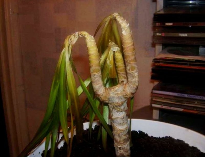 Toprak su dolu olduğunda, bu tür belirtiler de ortaya çıkar. Dracaena'yı sadece tepeyi dikerek canlandırmak mümkün olacak.