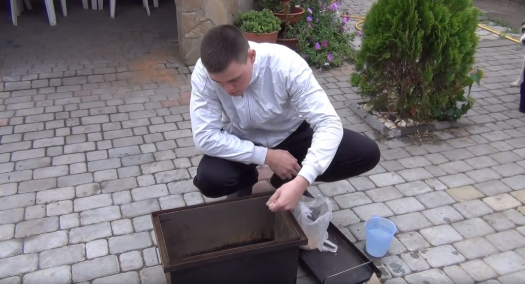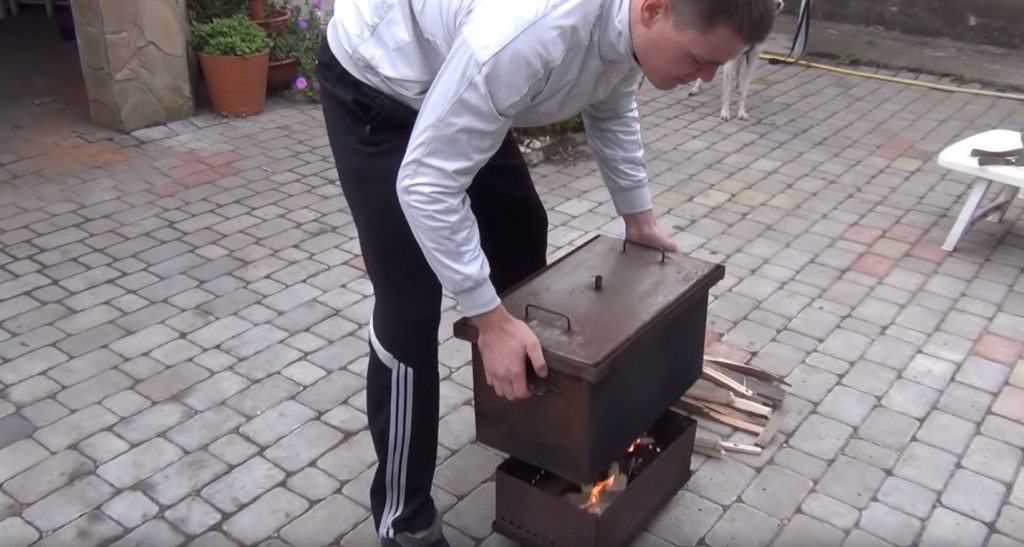 Dumanın kapağın kenarlarının altından tütsüleme odasından çıkmaması için, çevresindeki oluklara su dökülür, böylece bir su sızdırmazlığı yapılır.
