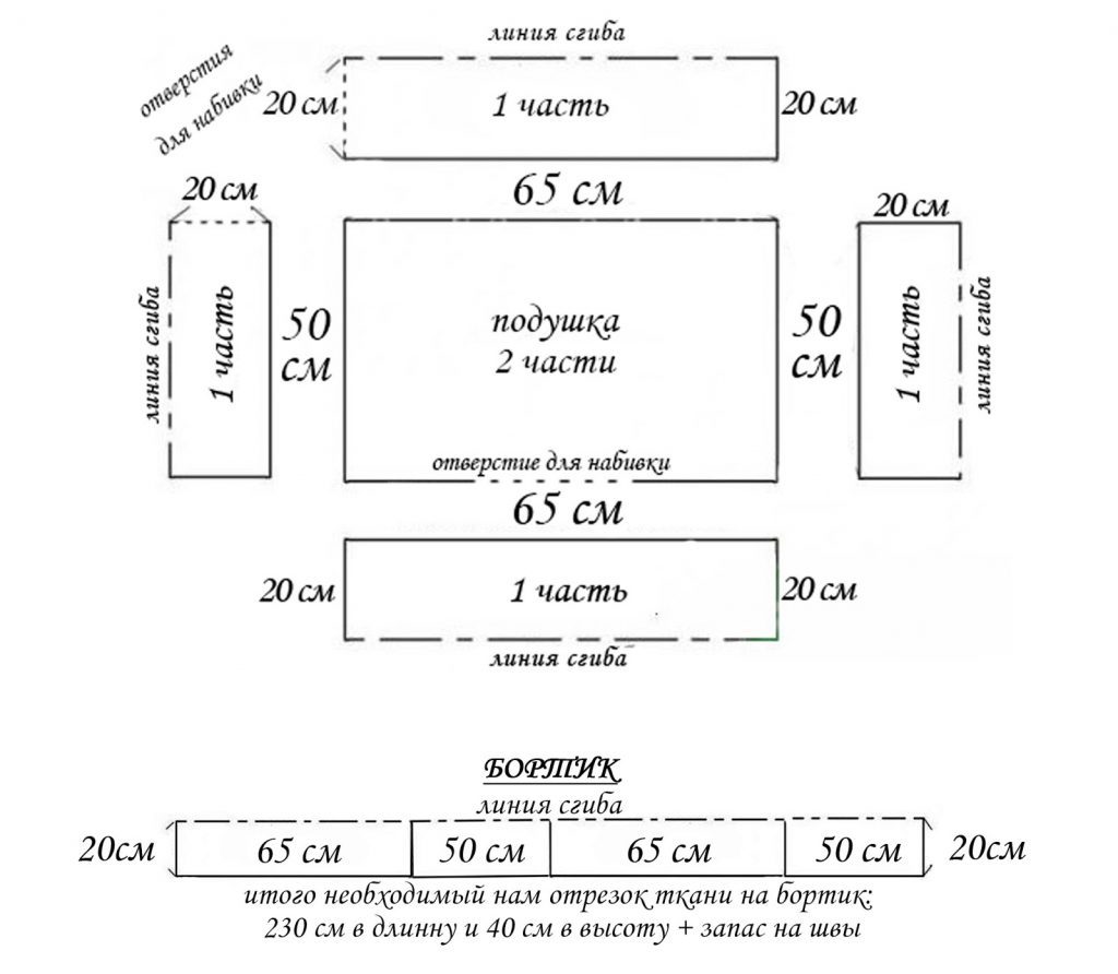 - Kapağı dikmek için, dolguyu yerleştirmek için bir delik bırakarak iki büyük tuvali birbirine tutturmak yeterlidir.Görevi karmaşıklaştırabilir ve doldurma yüksekliğine eşit dikdörtgen eklerin kenarlarını dikebilirsiniz.