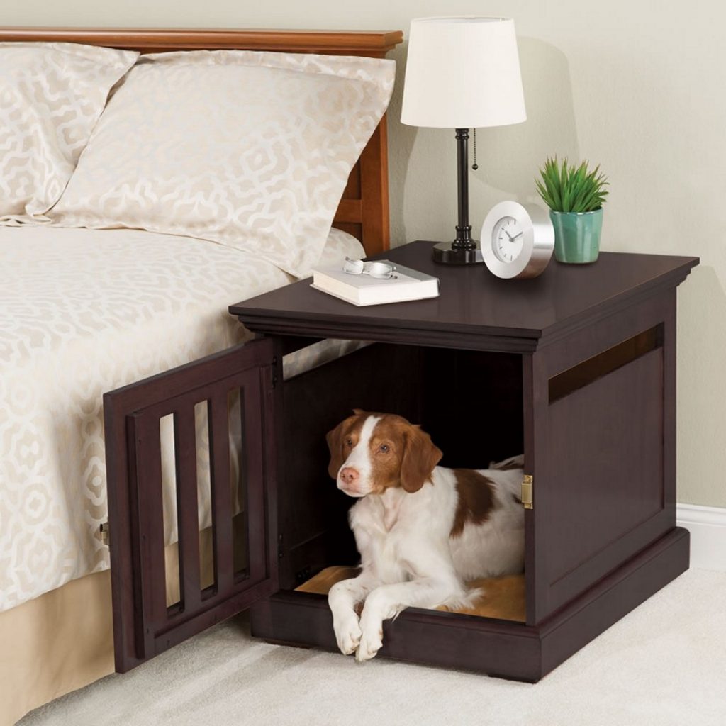 - yandaki bir komodinde bir köpek için bir giriş kesilerek ve yeni konutun içine yumuşak bir yatak konarak gerçek bir ev elde edilebilir; konut girişinin çok göze çarpmaması için kalın pamuklu veya ketenden yapılmış dekoratif bir perde ile perdelenebilir.